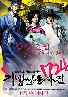 The Accidental Gangster and the Mistaken Courtesan (Korean: 1724 기방난동사건; RR: 1724 Gibang-nandong sageon; literally "Gibang riot in 1724") is a 2008 South Korean action comedy film. The film depicts the gangster culture of Joseon Dynasty Korea and is based on an actual fight that occurred at a kisaeng house in 1724.[2] The film was directed by Yeo Kyun-dong, and stars Lee Jung-jae—in his first film role for three years—alongside Kim Ok-bin.[2][3] Costumes for the film were created by fashion designer André Kim.[3]