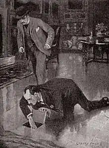 Holmes finds the hiding place in the floor, 1904 illustration by Sidney Paget in The Strand Magazine