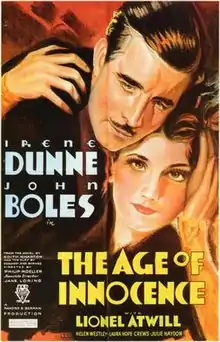 The Age of Innocence is a 1934 American drama film directed by Philip Moeller and starring Irene Dunne, John Boles and Lionel Atwill.[1] The film is an adaptation of the 1920 novel The Age of Innocence by Edith Wharton, set in the fashionable New York society of the 1870s. Prolific on Broadway, Philip Moeller directed only two films: this, and the 1935 Break of Hearts with Katharine Hepburn.