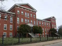 The West Building was built to be the new "Colored Almshouse", also known as the new "Colored Home".[3][4] It replaced the old "Colored Almshouse" and hospital which was opened in 1868.[5] It was located on what is now the grounds of the Hebrew Cemetery Annex. Those same grounds were the former location of the "City Hospital" for smallpox, along with a portion of the "Shockoe Hill African Burying Ground". The new "Colored Almshouse" also housed a charity hospital for African-American residents of Richmond. The garage is a two-story masonry and wood frame two bay building. The Almshouse, later called the Richmond Nursing Home, continued to serve the less-fortunate members of the Richmond community until the late 1970s.[6][7] It is now in use again as a privately managed home for low-income residents.