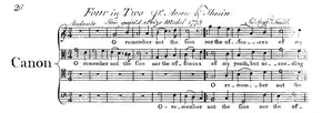 Beginning of the Canon "O Remember" by John Stafford Smith. It "gain'd a Prize Medal" from the London Catch Club in 1773.[9]