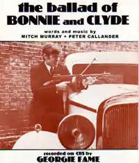 "The Ballad of Bonnie and Clyde" is a song, written by Mitch Murray and Peter Callander,[4] and recorded by the British rhythm and blues singer Georgie Fame.[3] Released as a single, the song reached number one in the UK Singles Chart for one week from 24 January 1968.[5] The song reached number seven in the US Billboard Chart later the same year.[6]