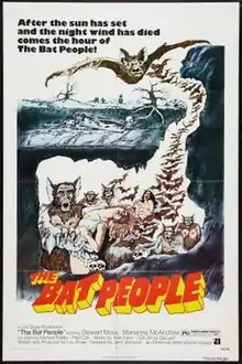 The Bat People is a 1974 American horror film directed by Jerry Jameson, produced by Lou Shaw, and distributed by American International Pictures. Starring Stewart Moss and Marianne McAndrew, the film tells the story of a doctor, who after being bitten by a bat in a cave, undergoes an accelerating transformation into a man-bat creature.