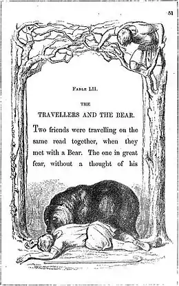 The Bear and the Travelers is a fable attributed to Aesop and is number 65 in the Perry Index.[1] It was expanded and given a new meaning in mediaeval times.