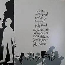 The Birthday Party is a 1980 album by Australian rock band The Boys Next Door (later reissued under the band name The Birthday Party).[5][6] The album was produced by The Boys Next Door, Tony Cohen, and Keith Glass; it was recorded with Cohen engineering at Richmond Recorders Studios in Melbourne from July 1979 to February 1980.[7]