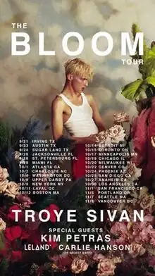 - ↑ Spanos, Brittany (30 May 2018). "Troye Sivan Announces North American 'Bloom' Tour". Rolling Stone. Retrieved 22 May 2019.