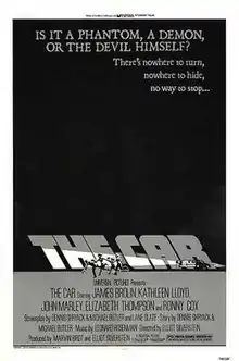 The Car is a 1977 American supernatural horror film[2][3] directed by Elliot Silverstein and written by Michael Butler, Dennis Shryack and Lane Slate. The film stars James Brolin, Kathleen Lloyd, John Marley and Ronny Cox, along with real-life sisters Kim and Kyle Richards (as Brolin's daughters). It tells the story of a black unmanned self-driving mysterious car that goes on a murderous rampage, terrorizing the residents of a small town.