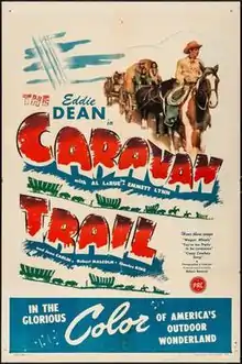 The Caravan Trail is a 1946 American Western film directed by Robert Emmett Tansey and written by Frances Kavanaugh. The film stars Eddie Dean, Lash LaRue, Emmett Lynn, Jean Carlin, Robert Malcolm and Charles King. The film was released on April 20, 1946, by Producers Releasing Corporation.[1][2][3]