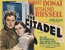 The Citadel is a 1938 British drama film based on the 1937 novel of the same name by A. J. Cronin. The film was directed by King Vidor and produced by Victor Saville for Metro-Goldwyn-Mayer British at Denham Studios.[1] It stars Robert Donat and Rosalind Russell.