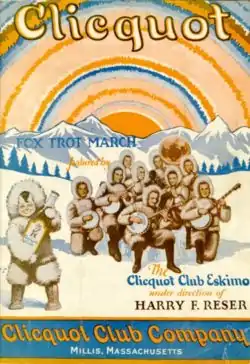 The Clicquot Club Eskimos was a popular musical variety radio show, first heard in 1923, featuring a banjo orchestra directed by Harry Reser. A popular ginger ale, Clicquot Club, was Canada Dry's main rival. Clicquot (pronounced "klee-ko") was the name of the Eskimo boy mascot depicted in advertisements and on the product. [1]