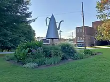 The Mickey Coffee Pot is a large tin coffee pot which is a local landmark in Winston-Salem, Forsyth County, North Carolina. The coffee pot was created in 1858 by tinsmiths Julius and Samuel Mickey as an advertisement for their tin shop on South Main Street.[1] The pot is considered to be a symbol of hospitality and an unofficial symbol of the city.[1][2]