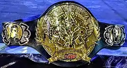 ![]() The championship belt, with depictions of Perro Aguayo Jr. and Eddie Guerrero on the left and right side plates respectively | |||||||||||||||||