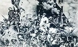 The Deluge (Polish: Potop) is a historical novel by the Polish author Henryk Sienkiewicz, published in 1886. It is the second volume of a three-volume series known to Poles as "The Trilogy," having been preceded by With Fire and Sword (Ogniem i mieczem, 1884) and followed by Fire in the Steppe (Pan Wołodyjowski, 1888). The novel tells a story of a fictional Polish–Lithuanian Commonwealth soldier and noble Andrzej Kmicic and shows a panorama of the Commonwealth during its historical period of the Deluge, which was a part of the Northern Wars.