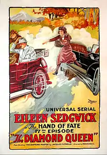 The Diamond Queen is a 1921 American adventure film serial directed by Edward A. Kull. The film is considered to be lost.[1] The creator of the story Jacques Futrelle was lost in the Titanic disaster in 1912.