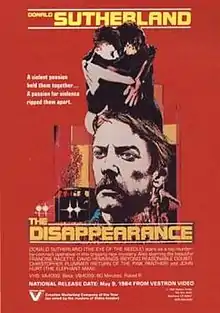 The Disappearance is a 1977 British-Canadian thriller film directed by Stuart Cooper and starring Donald Sutherland, Francine Racette, David Hemmings and John Hurt.[2] It is based on the novel Echoes of Celandine by Derek Marlowe.