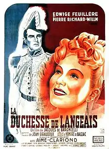The Duchess of Langeais (French: La Duchesse de Langeais) is a 1942 French historical drama film directed by Jacques de Baroncelli and starring Edwige Feuillère, Pierre Richard-Willm and Aimé Clariond. It is also known as Wicked Duchess.[1]