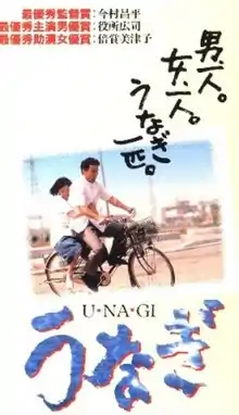 The Eel (うなぎ, Unagi) is a 1997 film directed by Shohei Imamura and starring Kōji Yakusho, Misa Shimizu, Mitsuko Baisho, and Akira Emoto. The film is loosely based on the novel On Parole by celebrated author Akira Yoshimura, combined with elements from the director's 1966 film The Pornographers. It shared the Palme d'Or at the 1997 Cannes Film Festival with Taste of Cherry.[2] It also won the 1998 Kinema Junpo Award for Best Film of the Year.