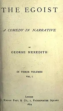 - ↑ Meredith, George (1879). The Egoist, A Comedy in Narrative. Vol. I (1 ed.). London: Kegan Paul & Co. Retrieved 3 June 2016 – via Internet Archive.