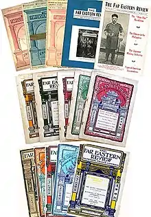 The FER was owned solely by the publisher, George Bronson Rea, who preferred to be referred to as "Geo. Bronson Rea". For the first eight years of publication Rea received a U.S. Government subsidy by way of the guaranteed purchase of one thousand copies which were distributed as annual subscriptions to overseas commercial, educational and government institutions (mostly in the U.S.A.) Rea also received travel expenses for his pollical lobbying work done for the Philippines colonial administration. However, later Rea ran foul of the U.S administration and the publishing subsidies were withdrawn meaning that only advertising revenues and Rea’s own money kept the magazine afloat, although with increasing difficulty as the years went by.[4] The most the print run ever reached was an estimated 3000 copies, one third of which continued to be sent overseas although no longer paid for directly by the U.S Government after about 1913. It is unlikely that many subscriptions were actually received for these especially when Rea became a lobbyist for Japanese interests in Manchuria . During the first decade, annual subscriptions for the journal were only U.S.$2.50 per annum, rising to $5 in the 1920s. The subscription price in China was Mexican $10. Spanish or Mexican (silver) dollars were used extensively for trade within the Far East in the 19th and early 20th centuries.[5]