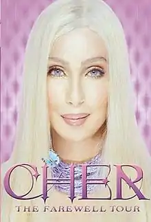 The Farewell Tour is the third live music video title by singer-actress Cher. Released by Warner Music Video in 2003, it contained a live date from Living Proof: The Farewell Tour, filmed at American Airlines Arena in Miami on November 8, 2002. It was originally aired on April 8, 2003[1] as a television special on American network NBC attracting near 17 million viewers. Cher was awarded with an Emmy for Outstanding Variety, Music or Comedy Special. The same performance is also available on CD format as Live! The Farewell Tour. The video was a big success in many countries and has received several certification awards: 3× Platinum in the US, 8× Platinum in Australia and Platinum in the UK, among others respectively.