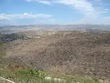 Production on the episode began on September 14, 2004, and ran through to September 22. The standing sets were used for the first three days of filming. Further sets were created to represent the Vulcan Embassy and portions of the Forge. The final two days were filmed on site in Simi Valley in southern California, which doubled as the main areas of the Forge. The property used in the valley was owned by mining company P.W. Gillibrand, which was near property owned by Vulcan Materials Company. Optical effects were added to represent the firestorm and the sehlat.[2] The CGI sehlat was based on one which previously appeared in Star Trek: The Animated Series episode "Yesteryear". Visual effects producer Dan Curry said that the team "looked at the animated series and it just looked nice and pleasant, so I did a couple of sketches to do a reinterpretation of it to make it look scary, but not be too radical a departure from the original".[3] Eden FX modelled the CGI under supervision by staff visual effects supervisor Art Codron. Additional care was taken to create the fur so that close-ups could be used if required.[3] The only physical portion of the sehlat to be created was a single paw.[2] "Yesteryear" was set in the Vulcan city Shi'Khar, which reappears in "The Forge", and it is also the first mention of the area on Vulcan called the Forge. A further reference was made to "Vulcan's Forge" in the Deep Space Nine episode "Change of Heart".[2]