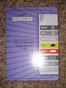 - Earn PH.D- A player stops on this space, adds 3,000 Life Points, gets a promotion and adds an arrow clip to the PH.D on the scorecard.