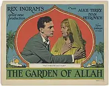 The Garden of Allah is a 1927 American silent romantic drama film directed by Rex Ingram, his final film for Metro-Goldwyn-Mayer. The film stars Ingram’s wife, actress Alice Terry and Iván Petrovich. It is the second version of the Robert Hichens 1904 British novel of the same name, which had been filmed by the Selig Polyscope Company in 1916 with Helen Ware and would be filmed again in 1936 with Marlene Dietrich and Charles Boyer.[1]