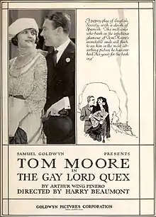 The Gay Lord Quex is a lost[1] 1919 American silent comedy film directed by Harry Beaumont and starring Tom Moore, Gloria Hope, and Naomi Childers[2] It is based on the 1899 play The Gay Lord Quex by the British writer Arthur Wing Pinero.