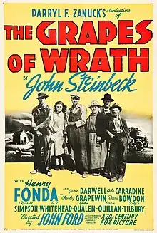 The Grapes of Wrath is a 1940 American drama film directed by John Ford. It was based on John Steinbeck's 1939 Pulitzer Prize-winning novel of the same name. The screenplay was written by Nunnally Johnson and the executive producer was Darryl F. Zanuck.[3]
