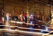 The opaque negative image print was developed by 80 volunteers during five hours in a vinyl pool liner custom tray, the size of an Olympic swimming pool, with 600 US gallons (2,300 L) of traditional developer and 1,200 US gallons (4,500 L) of fixer pumped into the tray using high volume pumps. The photograph was then washed using fire hoses attached to two fire hydrants. The finished print is 111 feet (34 m) wide and 32 feet (9.8 m) high with an area of 3,505.75 sq ft (325.695 m2).[6][7]