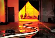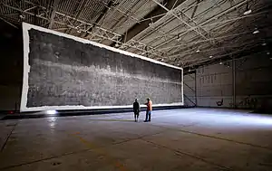 As of 2011, The Great Picture (111 feet (34 m) wide and 32 feet (9.8 m) high) holds the Guinness World Record for the largest print photograph, and the camera with which it was made holds a record for being the world's largest.[1] The photograph was taken in 2006 as part of the Legacy Project, a photographic compilation and record of the history of Marine Corps Air Station El Toro as it is being transformed into the Orange County Great Park. The project used the abandoned F-18 hangar #115 at the closed fighter base in Irvine, California, United States, as the world's largest pinhole camera. The aim was to make a black-and-white negative print of the Marine Corps air station with its control tower and runways, with the San Joaquin Hills in the background. The photograph was unveiled on July 12, 2006, during a reception held in the hangar and was exhibited for the first time at the Art Center College of Design in Pasadena, California, on September 6, 2007.[2][3]