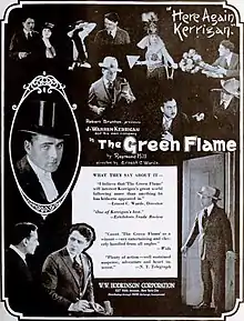 The Green Flame is a 1920 American silent crime drama film directed by Ernest C. Warde and starring J. Warren Kerrigan, Fritzi Brunette and Jay Morley.[1]
