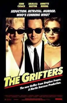 The Grifters is a 1990 American neo-noir[1] crime thriller film directed by Stephen Frears, produced by Martin Scorsese, and starring John Cusack, Anjelica Huston, and Annette Bening.[2] The screenplay was written by Donald E. Westlake, based on Jim Thompson's 1963 novel of the same name. The film won the Independent Spirit Award for Best Film and was declared one of the Top 10 films of 1990 by The National Board of Review of Motion Pictures.
