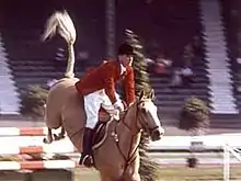 This horse's registered name was Pelo de Oro, which was given to him at birth. He became an open jumper and was shown in the national horse show circuit in the United States. Open jumpers compete for scores based on faults (if a jump is refused or a rail knocked down) and time elapsed to complete the course. Prior to his Olympic fame, he had a reputation as a temperamental jumper who was inclined to stop at water-and-ditch jumps. Such refusals would disqualify a jumper from an event. His nickname among competitors was "Sneaky Pete" for those reasons.