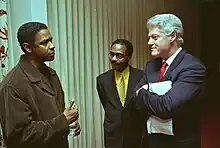 Actor Denzel Washington and then-president Bill Clinton at The Hurricane screening on December 3, 1999.