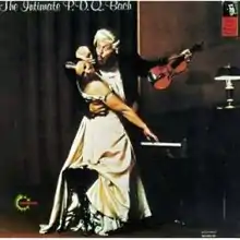 The Intimate P. D. Q. Bach is "a live recording of The Intimate P.D.Q. Bach stage show, featuring Professor Peter Schickele and the Semi-Pro Musica Antiqua" and was released on Vanguard Records in 1973. Many of the performer credits are humorous, and as with all P.D.Q. Bach recordings, the "S" numbers are fictitious and humorous. The cover art is a parody of the 1901 painting Kreutzer Sonata by René-Xavier Prinet.