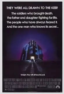The Keep is a 1983 supernatural horror film written and directed by Michael Mann and starring Scott Glenn, Gabriel Byrne, Jürgen Prochnow, Alberta Watson, and Ian McKellen. Set in Romania during World War II, it follows a group of Nazi soldiers who unleash a malevolent supernatural force after setting up camp in an ancient stone fortress in the Carpathian Mountains. It is an adaptation of the 1981 novel of the same title by American writer F. Paul Wilson.[5] The musical score was composed by Tangerine Dream.