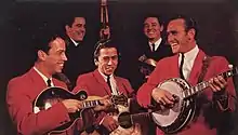 As a result of Roland's growing interest in bluegrass music, the group soon switched to an entirely bluegrass repertoire.[6] In 1957, banjoist Billy Ray Latham and Dobro player LeRoy Mack were added to the line-up,[5] with the group renaming themselves the Country Boys soon after.[4] In 1961, bassist Roger Bush replaced Eric Jr., who had left the band to get married.[4] That same year, the quartet had become popular enough to appear twice on The Andy Griffith Show.[4] Between 1959 and 1962, the Country Boys released three singles on the Sundown, Republic and Briar International record labels.[7]