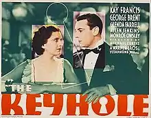The Keyhole is a 1933 American pre-Code comedy-drama film directed by Michael Curtiz, starring Kay Francis, George Brent, Glenda Farrell and Allen Jenkins.[1] It was released by Warner Bros. on March 25, 1933. A woman with two husbands tries to divorce one of them by heading down to Havana where things get more complicated.