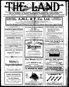 The Land first appeared in 1911 as a two penny broadsheet. It was originally published by the Farmers and Settlers' Association of New South Wales[1] and later Rural Press, which merged with Fairfax Media.[2]
