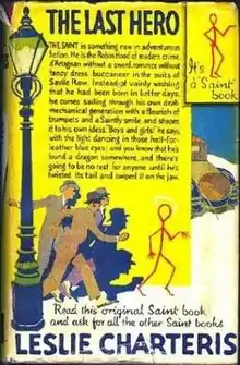 The Last Hero is the title of a thriller novel by Leslie Charteris that was first published in the United Kingdom in May 1930 by Hodder and Stoughton and in the United States in November 1930 by The Crime Club. The story initially appeared in The Thriller, a British magazine, in 1929.[1] Because of this somewhat convoluted publishing history, The Last Hero is occasionally cited as the second volume of adventures featuring the crime-busting antihero Simon Templar, alias The Saint, predating Enter the Saint. In fact, according to Charteris himself, it was the third book of the series. This is supported by references to the events of Enter the Saint within the novel.