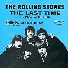 "The Last Time" is a song by the English rock band the Rolling Stones featuring the Andrew Oldham Orchestra, and the band's first original song released as an A-single in the UK.[2] Written by Mick Jagger and Keith Richards, and recorded at RCA Studios in Hollywood, California in January 1965, "The Last Time" was the band's third UK single to reach number one on the UK Singles Chart, spending three weeks at the top in March and early April 1965.[3] It reached number two in the Irish Singles Chart in March 1965, and was released on the US version of the album Out of Our Heads on 30 July 1965.