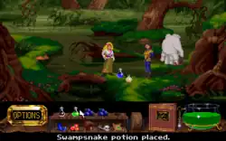 Forced to find transport to a volcano island that links to the center of the world, Zanthia quickly recovers her missing equipment in the nearby swamp, and questions who stole them. Zanthia eventually secures passage to the center of the world and locates an anchor stone, only for Marko to contact her and reveal that the hunt for one was nothing but a snipe hunt, used by The Hand to distract Zanthia and the other Mystics from its plan to wipe Kyrandia from the world. Marko reveals the real cause of the kingdom's predicament lies at the "Wheel of Fate", but is dragged away before he can help Zanthia reach it. Reaching the surface, Zanthia begins making her way to the clouds, where the Wheel of Fate resides, along the way meeting two men seeking to capture a living disembodied foot. Aiding them, she learns that The Hand is a fragment of a long-deceased gigantic evil sorcerer, and that it seeks to wipe out a kingdom to create a void that the sorcerer can use to rebuild himself.
