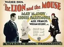 The Lion and the Mouse (1928) is a part-silent/part-sound drama film produced by Warner Bros., directed by Lloyd Bacon, and based on the 1905 play by Charles Klein.[2] The film marks the first time Lionel Barrymore, who was on loan out from MGM, spoke from the screen.