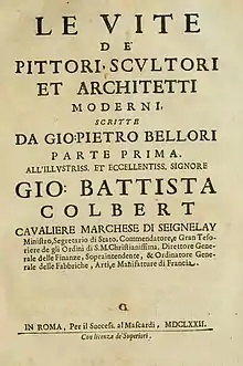 The Lives of the Modern Painters, Sculptors, and Architects or Le vite de' pittori, scultori et architetti moderni is a series of artist biographies written by Gian Pietro Bellori (1613–96), whom Julius von Schlosser called "the most important historiographer of art not only of Rome, but all Italy, even of Europe, in the seventeenth century".[1] It is one of the foundational texts of the history and criticism of European art.[2]