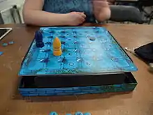 ![]() The Magic Labyrinth during a two-player game. Notice that the walls cannot be seen, as they are underneath the board. | |