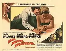 The Man Inside is a 1958 British crime adventure film brought to the screen by Warwick Film Productions. The screenplay by David Shaw was based on a novel by M. E. Chaber and the film was directed by John Gilling. Bonar Colleano played his last role in it before he died in a car accident.[2]