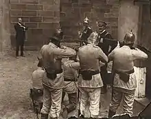 The American Ambassador pleads for her life, and the Reverend Gerard demands the right to see her and administer communion. The German officer Von Bissell grants a permit. She is sentenced and shot at 2am, her last words being: "Tell my friends I give my life willingly for my country. I have no fear or shrinking. I have seen death so often, it is not fearful or strange to me."[7][8]