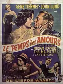 The Mating Season is a 1951 American comedy-drama romance film directed by Mitchell Leisen, and produced by Charles Brackett from a screenplay by Charles Brackett, Richard Breen, and Walter Reisch, based on the play Maggie by Caesar Dunn. The ensemble cast stars Gene Tierney, John Lund, Miriam Hopkins, and Thelma Ritter.[2][3]