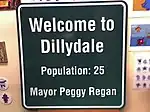 In Roger Hargreaves' original book series, each of the Mr. Men and Little Miss characters were given a hometown: Happyland, Tiddletown, Nonsenseland, etc. In the television series, all of the characters live in the same city, the township of Dillydale. The name "Dillydale" was coined by series producer Peggy Regan. To commemorate the historic naming, she was presented with a plaque and the honorary title of "The Mayor of Dillydale".